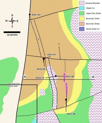 Figure 3 - Cross Section of Drill Holes AG22-08 and AG22-10 (CNW Group/Sitka Gold Corp.)