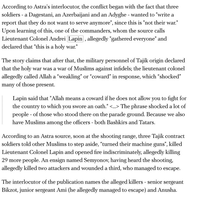 The massacre that occured at a military unit in Belgorod yesterday happened after one of the commanders said "insulting words about Allah", eyewitness tell Astra meduza.io