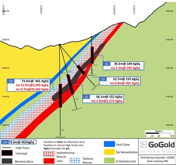 Figure 1: Eagle – Cross Section Holes 11, 12, 13, 14 (CNW Group/GoGold Resources Inc.)