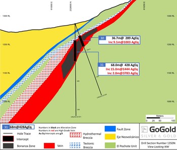 Figure 2: Eagle – Cross Section Holes 30,31 (CNW Group/GoGold Resources Inc.)