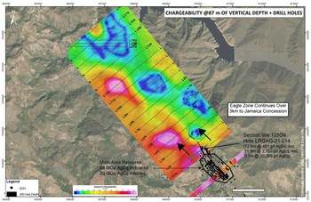 The new concession covers 1,107 hectares, including the area between the Main Deposit and the Company's Jamaica concession located 3km to the northwest, where the Company holds the rights to additional concessions. While negotiating the concession acquisition and securing legal ownership, the Company completed due diligence drilling, including hole LRGAG-21-014, which intercepted 20,269 g/t silver equivalent ("AgEq") over 0.7m, contained within 11.9m of 2,260 g/t AgEq which was contained within a wider intersection of 72.6m containing 461 g/t AgEq. This represents the highest value drill hole the Company has drilled in the district, with hole LRGAG-21-031 having comparable results of 428 g/t AgEq over 68 metres. Drilling highlights are provided in Table 1 below, with full results in Table 2.