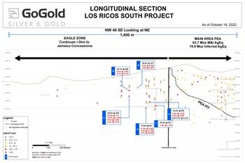 HALIFAX, NS, Oct. 18, 2022 /CNW/ - GoGold Resources Inc. (TSX: GGD) (OTCQX: GLGDF) ("GoGold", "the Company") is pleased to announce the acquisition of the Eagle concession covering the northern strike extension of the Main Deposit on the Los Ricos South property. The Eagle adjoins the Main Deposit where the Los Ricos South Preliminary Economic Assessment ("PEA") was released on January 20, 2021. This represents an extension to this previously defined Mineral Resource Estimate at Los Ricos South. Due diligence drilling has returned the highest grade intercepts to date in the district. These wide high grade intercepts are consistent with geophysical targets on the new concession. Additional drill results are to follow.