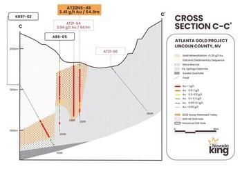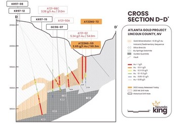 NEVADA KING INTERCEPTS 3.41 G/T AU OVER 54.9M, 2.65 G/T AU OVER 50.3M, AND 2.23 G/T AU OVER 51.8M, IN OXIDE, AT ITS ATLANTA GOLD MINE newswire.ca