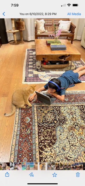 Whiskey reacts to cuddles, scratches, dried and smoked fish, cool air flow from outdoors, and either Jack or I doing work
