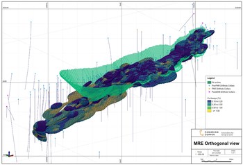 Figure 2: Base Case Pit Constrained MRE, Orthogonal View (CNW Group/Canadian Copper Inc.)