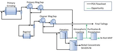Figure 1 – PEA Flowsheet and New Process Opportunity (CNW Group/FPX Nickel Corp.) Figure 2 – Impact of Grind Size, Preferential Grinding, and Magnetic Field Strength on DTR Nickel Recovery in the Primary Circuit (CNW Group/FPX Nickel Corp.) Highlights