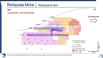 Torsten Danne, Director of Exploration, added: "To emphasize the potential of this vein to host additional high-grade mineralization, the longitudinal section in Fig. 2 (see below) shows that the Meteysaca structure has seen almost no extraction above Levels 520 and 560. We are presently rehabilitating Level 520, with detailed mapping and sampling programmed to start next month. We expect that this will allow us to add silver ounces beyond the mineralization confirmed to date, which currently extends over 210 m vertically between Level 480 and the deepest hole of our 2022 drill campaign."