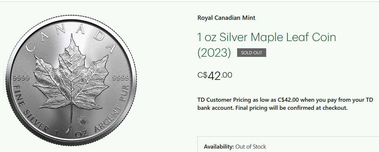 Silver Precious Metal: Flyin' Off the Shelves @Silver2021 TD Bank SOLD OUT again! That did not take long.
