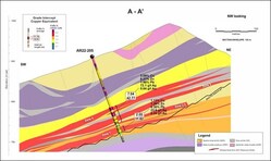 Figure 2. Cross section showing hole AR22-0205. (CNW Group/Trilogy Metals Inc.)