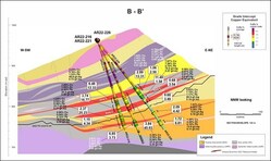 Figure 3. Cross section showing holes AR22-0216, AR22-0221 and AR22-0226. (CNW Group/Trilogy Metals Inc.)