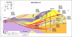 Figure 4. Cross section showing holes AR22-0214, AR22-0217, AR22-0230 and AR22-0234. (CNW Group/Trilogy Metals Inc.)