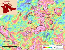 • "Copper and gold porphyry-style mineralization outcrops at the Megabuck zone, and the host rock has historically been referred to as the Megabuck porphyry intrusion," commented Steve Blower, Vice President of Exploration. "Our recently completed aeromagnetic survey suggests that there are other overburden covered porphyritic intrusions in the immediate area that have never been drilled."