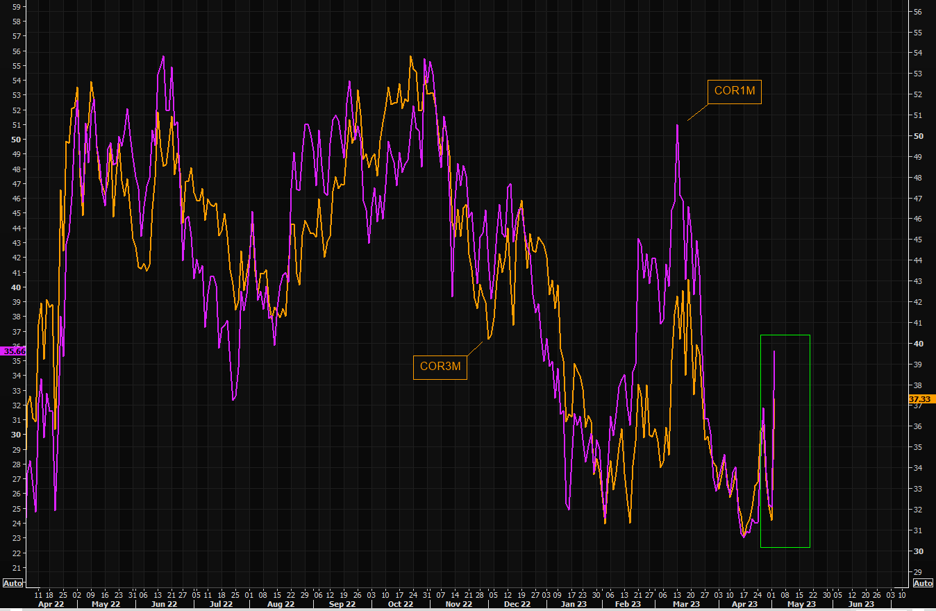 You know there is panic when the 1 and 3 month implied correlations trade like this....