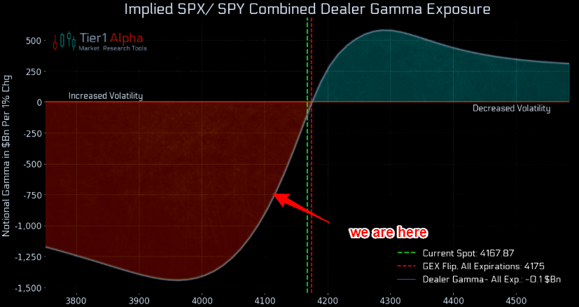 Narrative changed from super-bullish mega-cap unstoppable GAMMA to somewhat erratic negative gamma dealer positions. Dealers are back in short gamma land where they initially needed to sell a lot of deltas. The destabilizer is back...