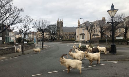 Goats take over deserted streets in Llandudno, north Wales. Photograph: Andrew Stuart/PA