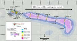 Figure 3. Sothman 2022 drilling with assays. (CNW Group/Canada Nickel Company Inc.)