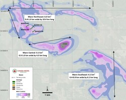 Figure 1. Plan View of Mann zones with ongoing drilling in Northwest area (CNW Group/Canada Nickel Company Inc.)