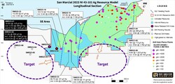 Figure 2: Longitudinal Section - Step Out Drilling Program Outside San Marcial Resource Area (CNW Group/GR Silver Mining Ltd.)