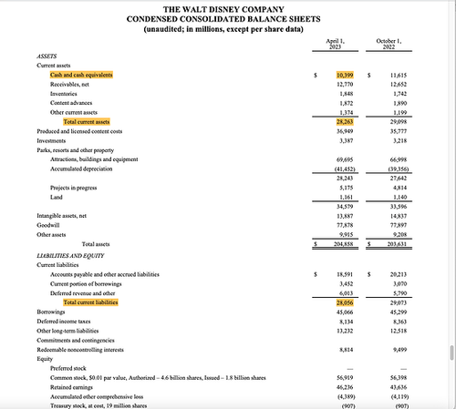 Disney’s Balance Sheet ProblemsBut looking at Disney’s balance sheet, they may not have enough liquidity to buy it.