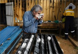 Figure 1: Mr. Morales-Ramirez at the Drill Core Shed on Golden Hill Property. (CNW Group/Mantaro Precious Metals Corp.)