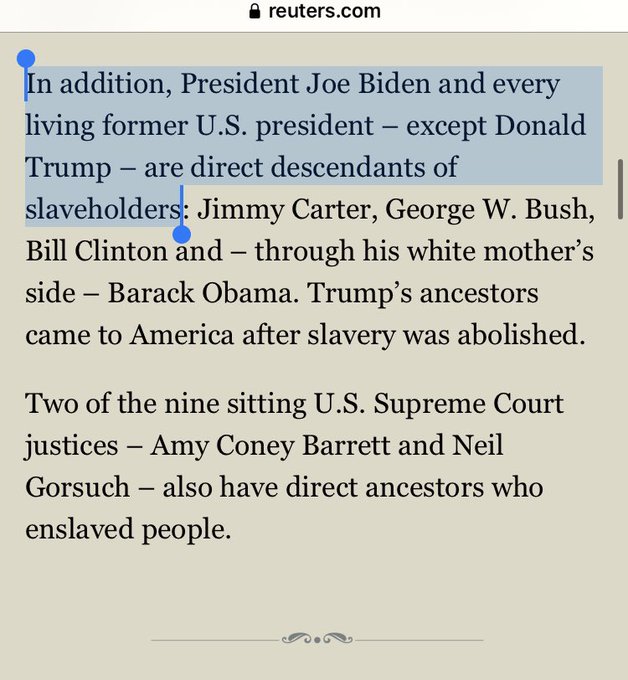 “President Joe Biden and every living former U.S. president – except Donald Trump – are direct descendants of slaveholders”