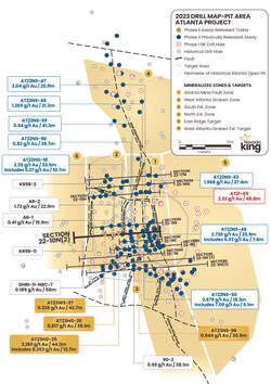 Nevada King Gold Corp. 10 Aug, 2023, 07:30 ET VANCOUVER, BC, Aug. 10, 2023 /PRNewswire/ - Nevada King Gold Corp. (TSXV: NKG) (OTCQX: NKGFF) ("Nevada King" or the "Company") is pleased to announce assay results from four vertical reverse circulation ("RC") holes recently completed at its Atlanta Gold Mine Project located 264km northeast of Las Vegas, Nevada, in the prolific Battle Mountain Trend. The four holes reported today are plotted in plan and along an updated Section 22-10N(2), initially released on April 20, 2023.