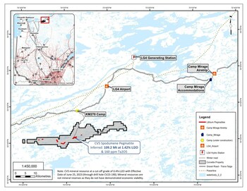 VANCOUVER, BC, Aug. 20, 2023 /CNW/ - (SYDNEY, Aug. 21, 2023) Patriot Battery Metals Inc. (the "Company" or "Patriot") (TSXV: PMET) (ASX: PMT) (OTCQX: PMETF) (FSE: R9GA) is pleased to provide an operations update on the mineral exploration and development of its Corvette Property (the "Property"), host to the CV5 Spodumene Pegmatite. The CV5 Spodumene Pegmatite, the 8th largest lithium pegmatite in the world, is located approximately 13.5 km south of the regional and all-weather Trans-Taiga Road and powerline infrastructure corridor, and within 50 km of the La-Grande 4 (LG4) hydroelectric dam complex.