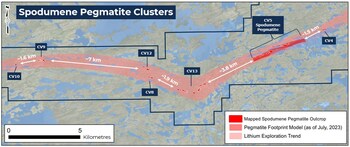 Figure 1: Spodumene pegmatite clusters at the Property discovered to date. (CNW Group/Patriot Battery Metals Inc)
