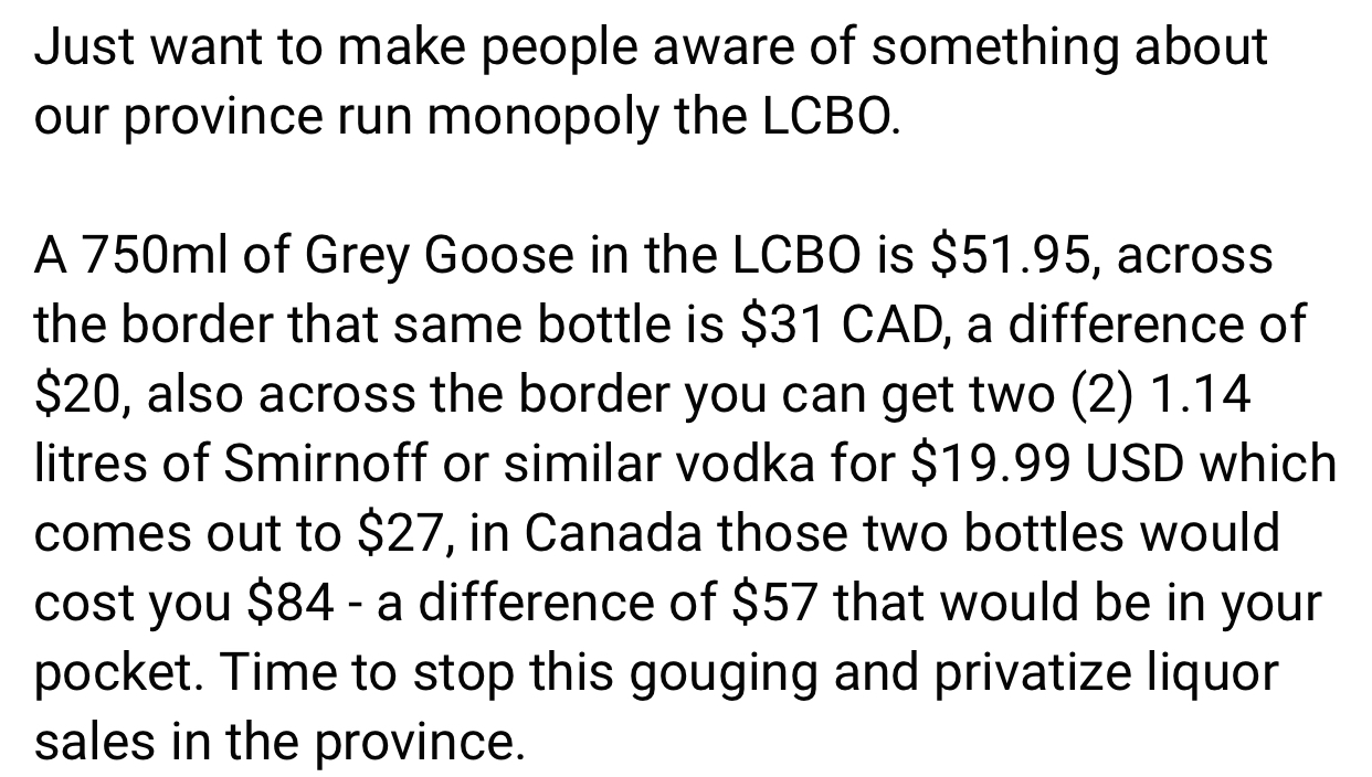 I talked to a guy that was bemoaning the loss of his job stocking shelves at a government liquor store in Canada.
