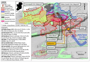 ______________________________ 1 Pallas Green Mineral Resource Estimate (MRE): 45 mln tonnes of 7.2% Zn and 1.2% Pb, Inferred (Glencore, 31-Dec-2022)