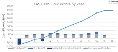 Figure 1 – LRS Cash Flow Profile by Year (CNW Group/GoGold Resources Inc.)
