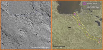 Inferred extent of the SD4 Pegmatite based on Lidar image, LDG Project, NWT (CNW Group/North Arrow Minerals Inc.)