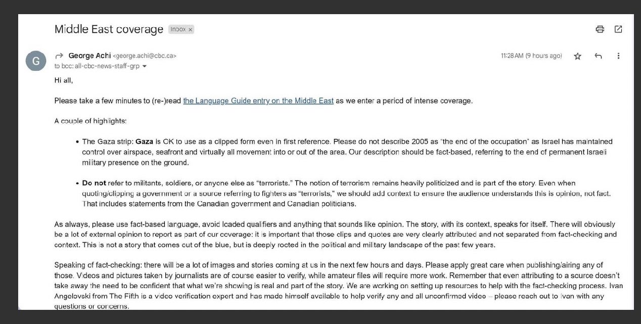Canadian Broadcasting Corporation ‘Journalistic Standards’ top dog to reporters: