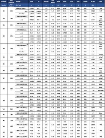 - 0.20 m @ 2,558 g/t Ag, 6.37% Pb, 16.49% Zn, 0.41% Cu and 18.61 g/t Au