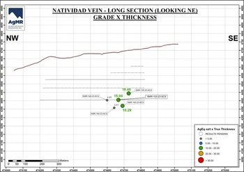 Figure 2 Long section of the Natividad vein – notes on calculation of AgEq values are detailed below Table 1 (CNW Group/Silver Mountain Resources Inc.)