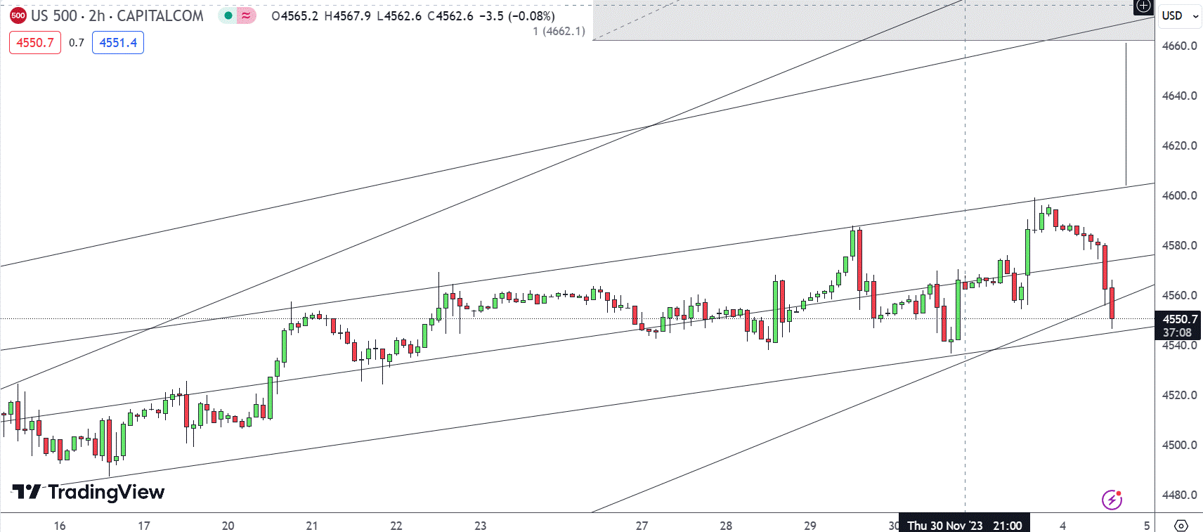Upward pointing channels USUALLY break UP. And... it makes sense to BUY on the bottom line hit, which is now at 4545.