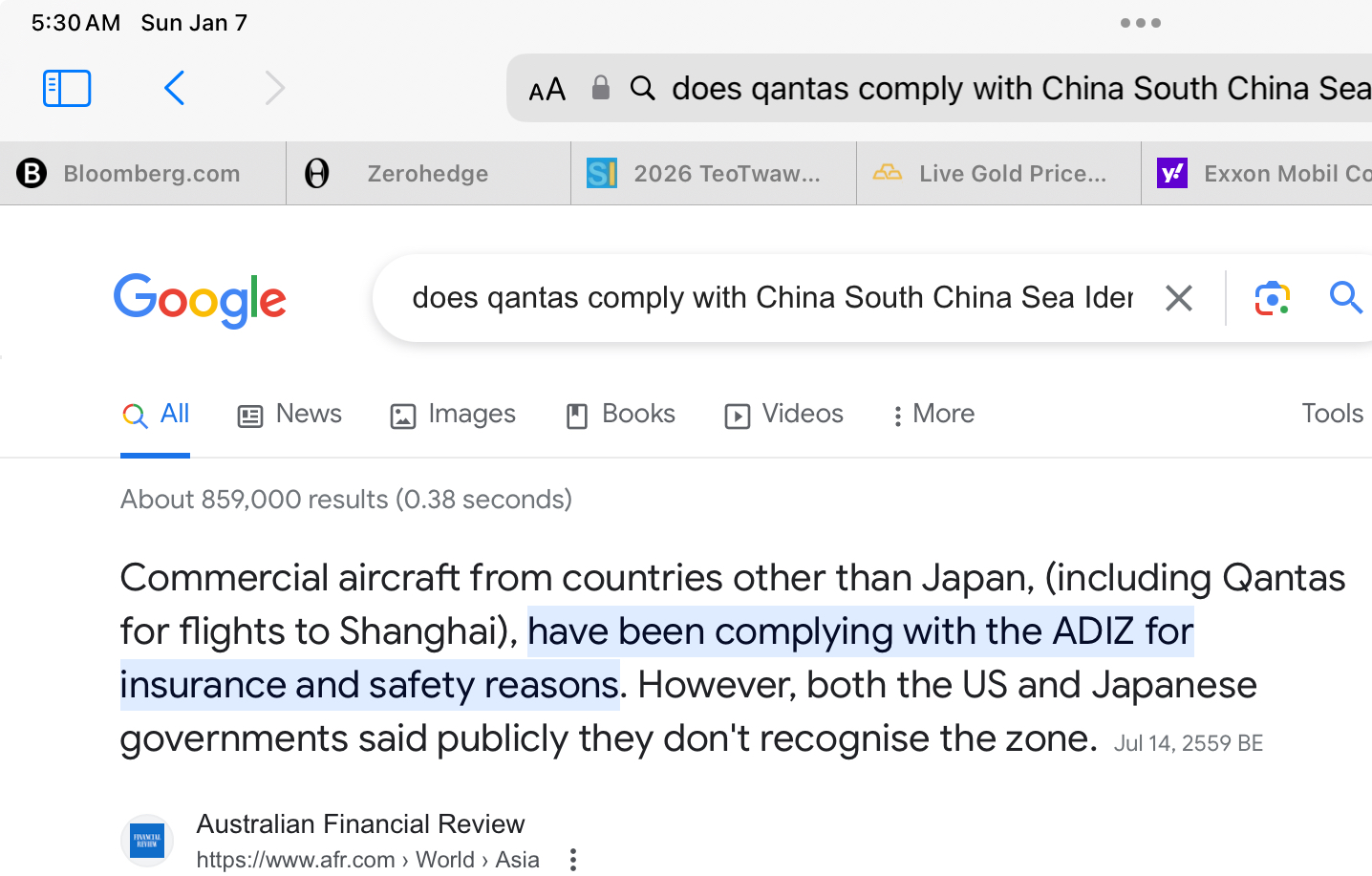 Qantas knew better except prodded by Aussie officialdom of the intelligence persuasion, to ignore the ID Zone.