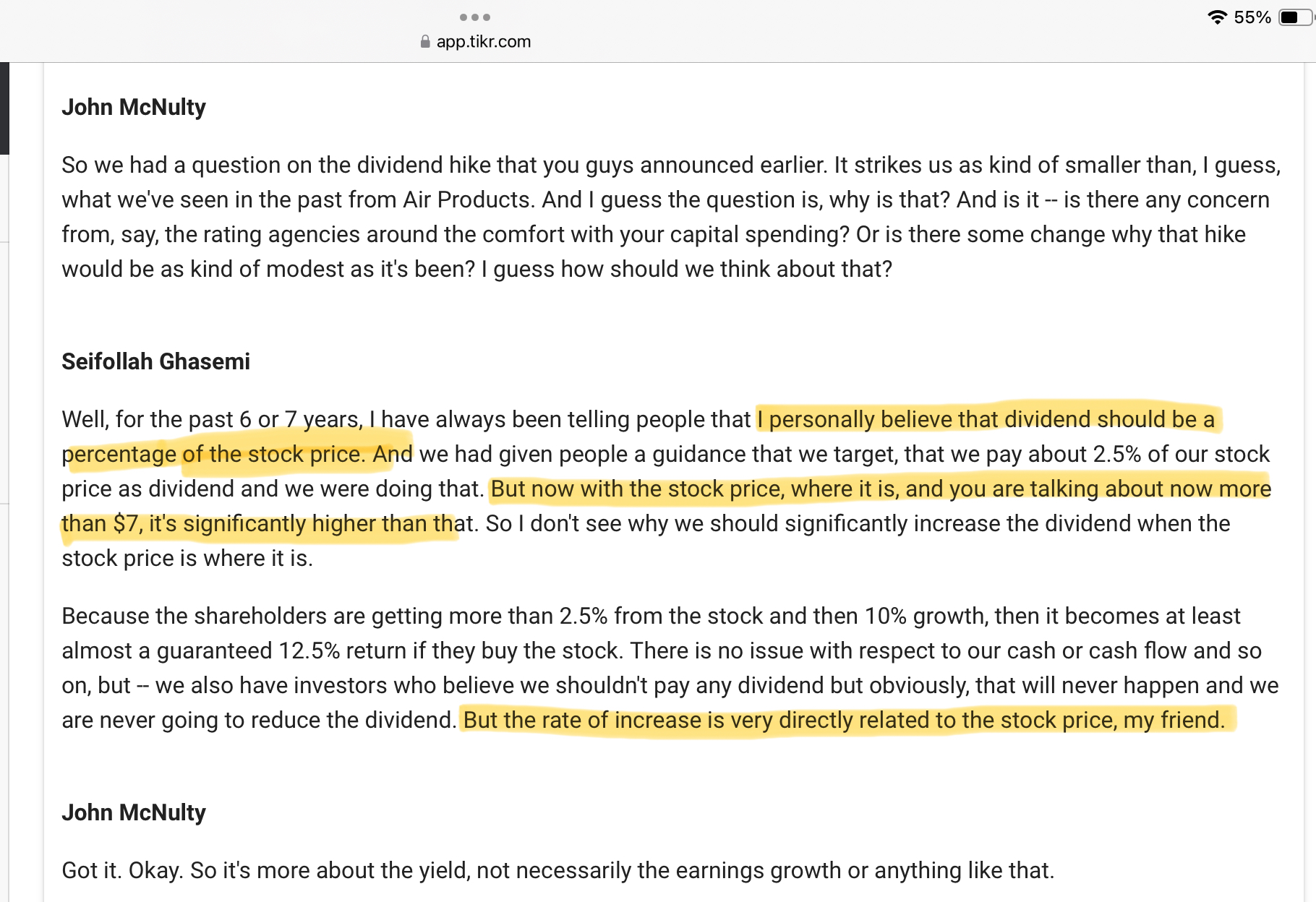 That said, the answer of the CEO regarding the smaller dividend increase was ridiculous and gives me some concerns about management grip on capital allocation.