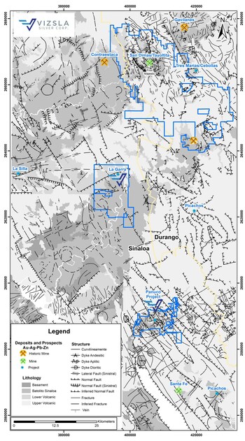 Figure 2. Geology of the silver-gold-rich Panuco – San Dimas corridor. (CNW Group/Vizsla Silver Corp.)