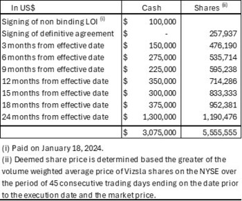 Cash Payments and Consideration Shares (CNW Group/Vizsla Silver Corp.)