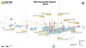Jonathon Deluce, CEO of Abitibi Metals, commented, "We are excited to highlight our new 3D model of the B26 Deposit, which showcases its size, scale and growth potential. There are few polymetallic opportunities of this grade and size within Canada and we believe these will be highly sought after as this commodity and precious metals market continues to break out. We will continue to refine the model as we receive results and provide updates to the market. We are still awaiting assays from over 30 holes from our phase 1 drill program, which we look forward to announcing over the coming weeks."