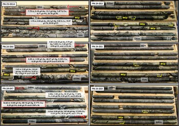 Figure 4 below presents core pictures of some of the best intersections to date. It is noticeable that the relative quantity of semi-massive chalcopyrite observed in both PN-23-031A and PN-24-044, while excellent, appears to be dwarfed when compared to some of the other holes coming from the core of the zone.