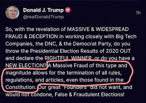 And said "massive fraud" gives him the moral authority to terminate the Constitution.