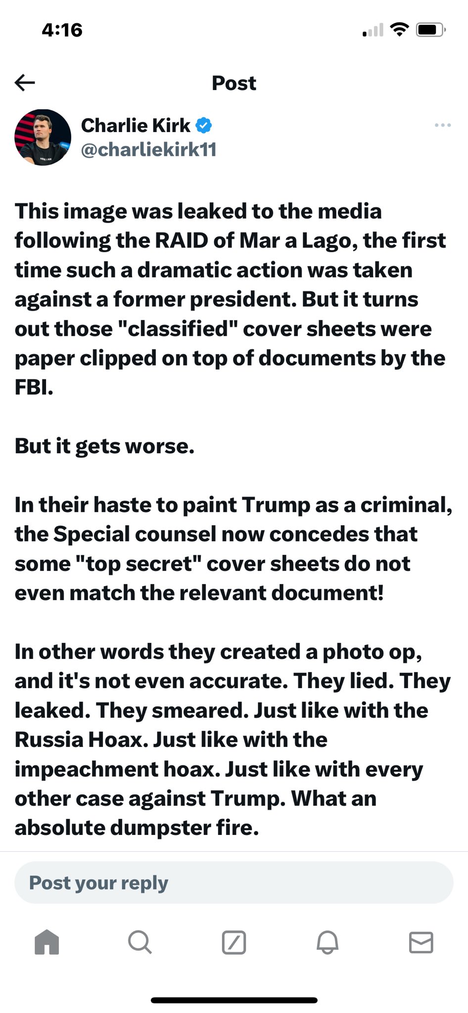 This image was leaked to the media following the RAID of Mar a Lago, the first time such a dramatic action was taken against a former president. But it turns out those "classified" cover sheets were paper clipped on top of documents by the FBI. But it gets worse. In their haste to paint Trump as a criminal, the Special counsel now concedes that some "top secret" cover sheets do not even match the relevant document! In other words they created a photo op, and it's not even accurate. They lied. They leaked. They smeared. Just like with the Russia Hoax. Just like with the impeachment hoax. Just like with every other case against Trump. What an absolute dumpster fire. Investigate Jack Smith! twitter.com