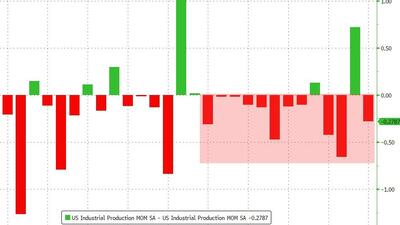 Industrial Production Disappoints, Manufacturing Contracts As Downward Revisions Continue