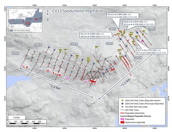 Patriot Battery Metals Inc. (the "Company" or "Patriot") (TSX: PMET) (ASX: PMT) (OTCQX: PMETF) (FSE: R9GA) is pleased to announce the final batch of core assay results from the CV13 Spodumene Pegmatite from its 2024 winter drill program at the Corvette Property, including holes targeting the recently discovered high-grade Vega Zone.
