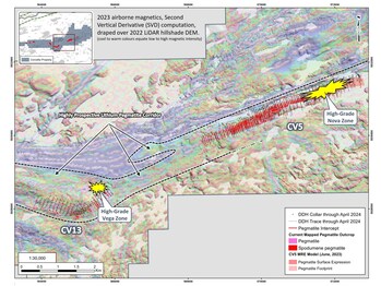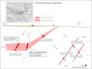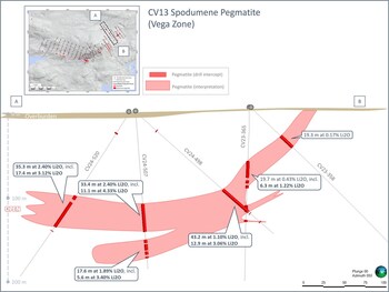 "With such high grades present at the Vega Zone – akin to what we see at the Nova Zone at CV5 – including a standout 9.7 m intercept grading over 5% Li2O, the new results clearly validate the considerable potential at CV13 as well as that of the larger mineralized system at Corvette. We intend to further delineate this discovery as part of our recently commenced summer-fall drill program," added Mr. Smith.