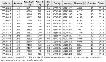 • Results for all drill holes completed during the 2024 winter program have now been reported – 50,961 m (121 holes) at CV5 and 11,557 m (45 holes) at CV13.