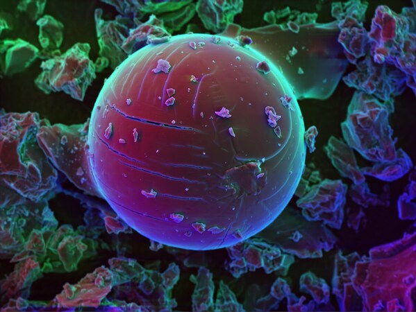 Electron microscope image of a molten spodumene droplet. Copyright Julia Woskowski. (CNW Group/Rock Tech Lithium Inc.)