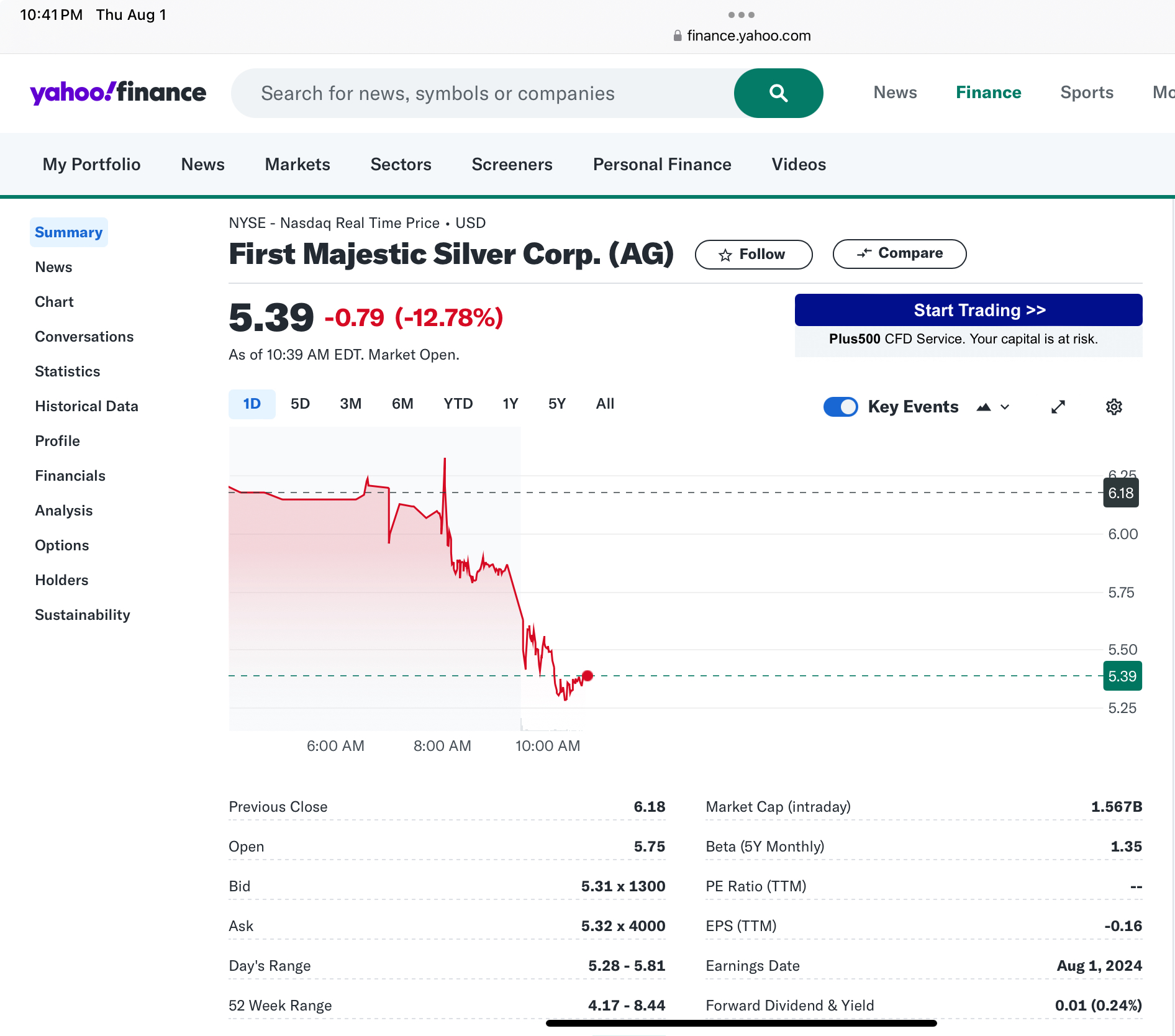 First Majestic (AG) tanked due partly to accumulation of silver inventory